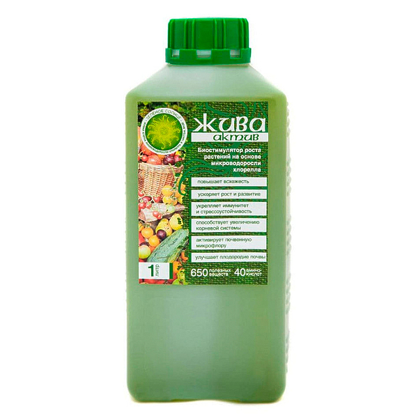 «Жива Актив» – натуральный катализатор, стимулятор роста с хлореллой, способствующий повышению урожайности грунта, быстрому прорастанию побегов, семян, укреплению рассады. Активные компоненты повышают сопротивляемость растений к инфекциям, паразитам, делают их устойчивыми к негативным факторам окружающей среды – холодному ветру, пониженным температурам, яркому солнцу.